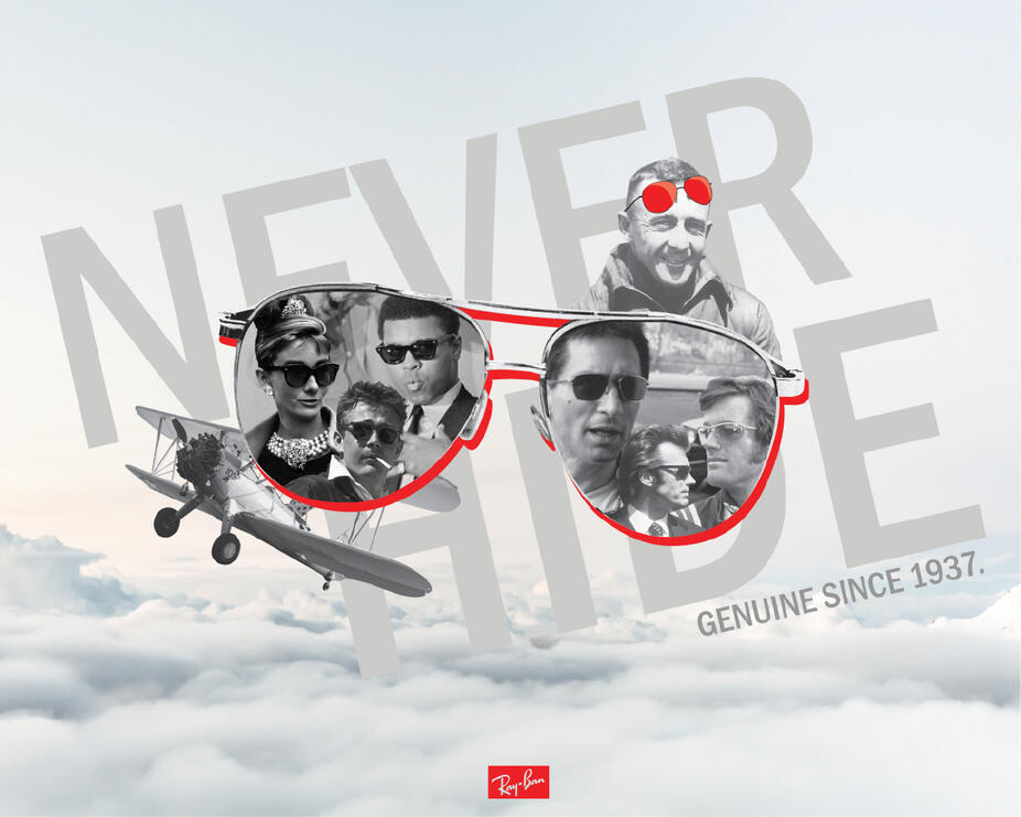 Made a poster advertisement for Ray-Ban sunglasses, meant to capture the company's history and legacy.